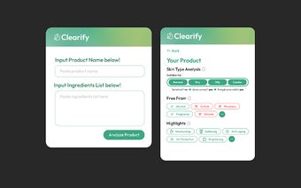 当涉及护肤品时,告别猜测和不确定性。Clearify赋予您所需的知识,使您能够自信地决策使用的化妆品。有了Clearify,购买护肤品从未如此简单和方便。